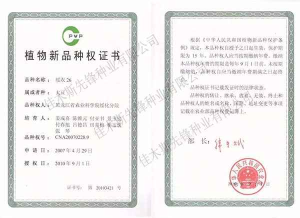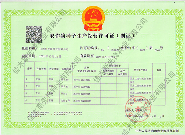 走進(jìn)我們 COME INTO US 您現(xiàn)在的位置:網(wǎng)站首頁 > 走進(jìn)我們 >資質(zhì)榮譽(yù) 公司簡(jiǎn)介 企業(yè)文化 領(lǐng)導(dǎo)致辭 資質(zhì)榮譽(yù) 農(nóng)作物種子生產(chǎn)經(jīng)營(yíng)許可證(副證) 農(nóng)作物種子生產(chǎn)經(jīng)營(yíng)許可證(副證) 農(nóng)作物種子生產(chǎn)經(jīng)營(yíng)許可證(副證) 黑農(nóng)48省農(nóng)作物品種合格證書 黑農(nóng)48植物新品種權(quán)證書 綏農(nóng)26植物新品種權(quán)證書 共32條記錄 當(dāng)前為第2頁/共6頁上一頁1234...6下一頁